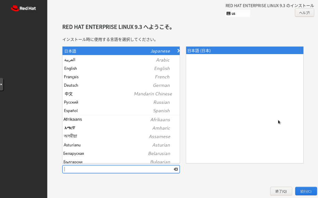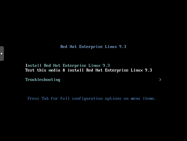 起動すると、以下の画面が表示されます。Install Red Hat Enterprise Linux 9.xを選択します。