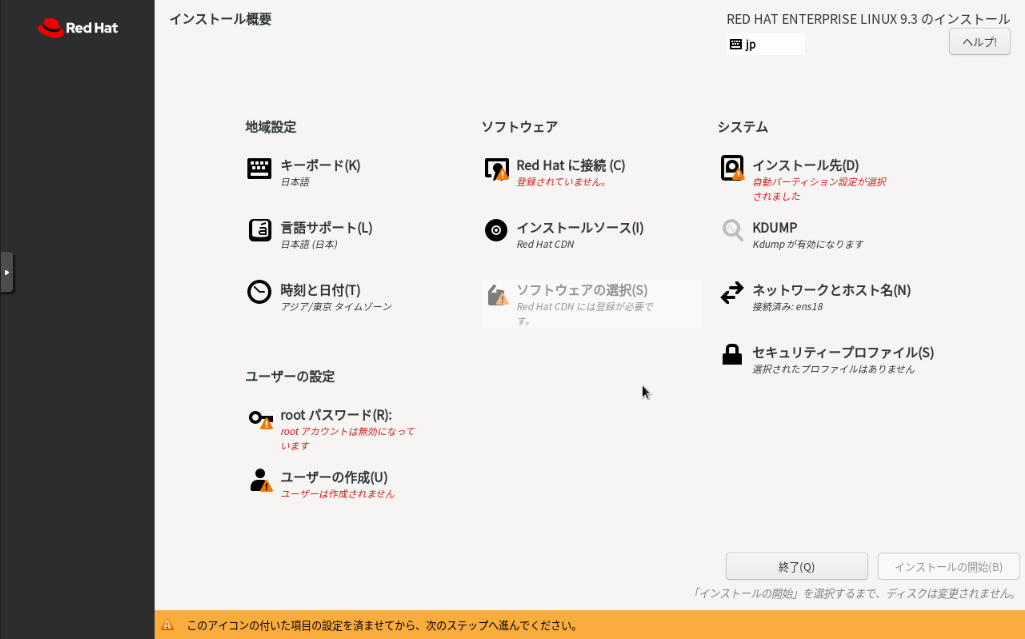 開発用サーバを昔あれこれ弄ってそのまま放置していて何も覚えていないので、OSの再インストールからやり直します。 Red Hat Enterprise Linux 9.5をインストールします。Red Hat Enterprise Linuxは Red Hat Developer Subscription for Individuals に登録することで16台まで無料で利用できます。 https://developers.redhat.com/articles/faqs-no-cost-red-hat-enterprise-linux